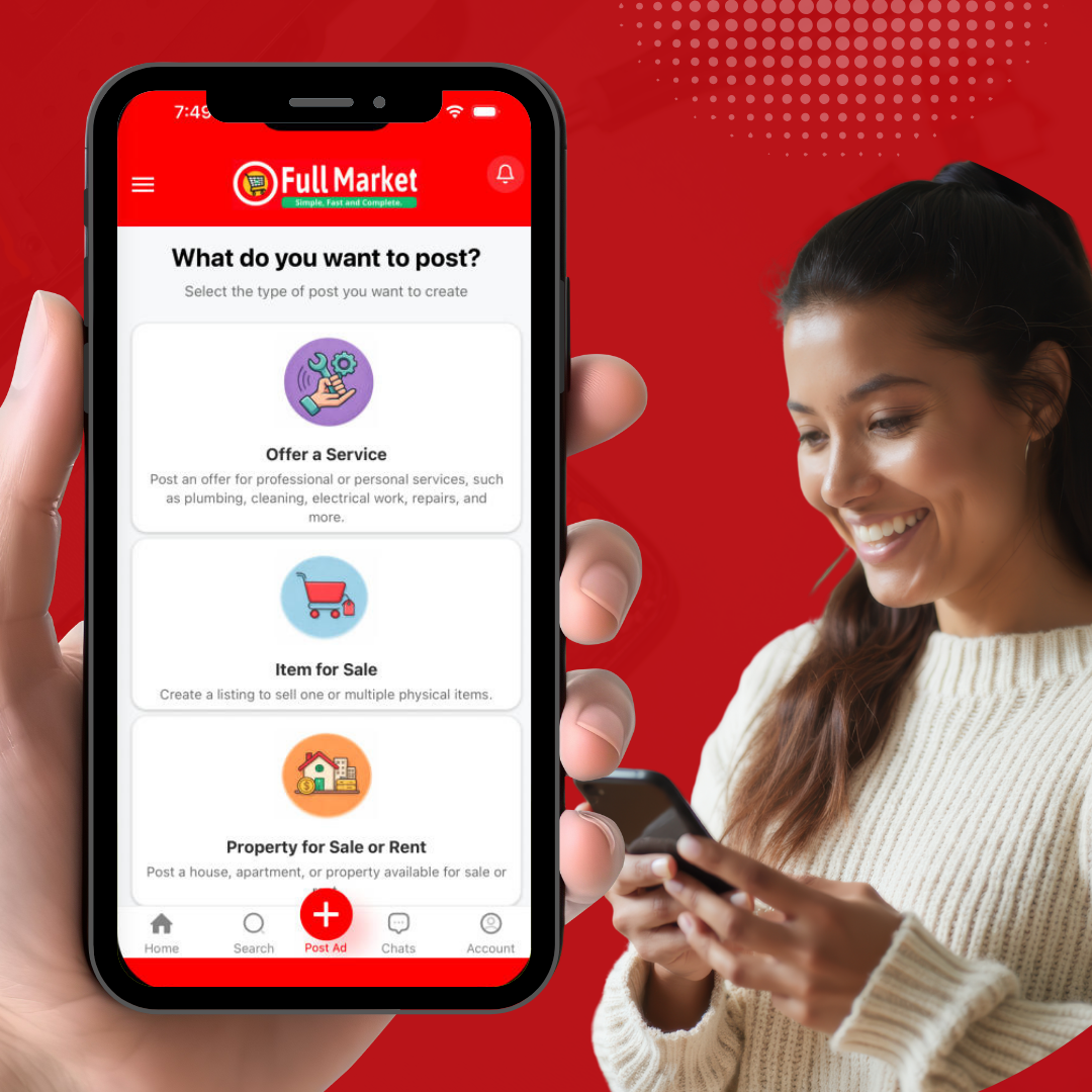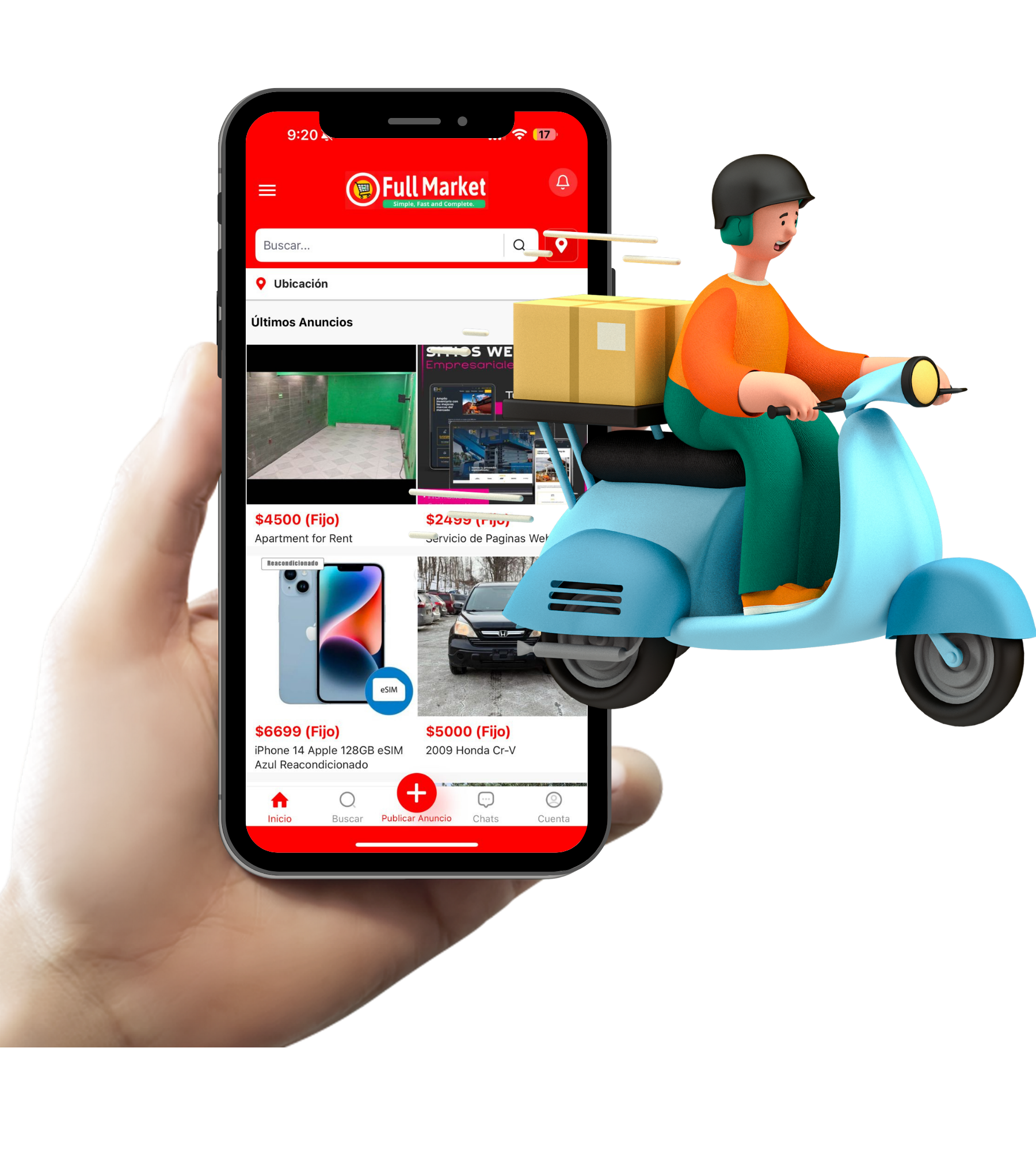 FullMarket es un marketplace digital moderno donde las personas pueden comprar, vender y ofrecer servicios de forma sencilla. Crea tu perfil, abre tu tienda, publica productos o servicios y llega a más clientes fácilmente.